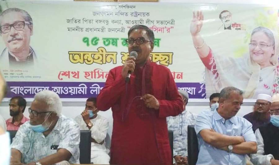 প্রধানমন্ত্রীর জন্মদিন উপলক্ষে আলোচনা সভায় বক্তব্য রাখেন জেলা আওয়ামী লীগ সভাপতি আইনজীবী মুহাম্মদ বাকী বিল্লাহ। ছবি: বাংলারচিঠিডটকম