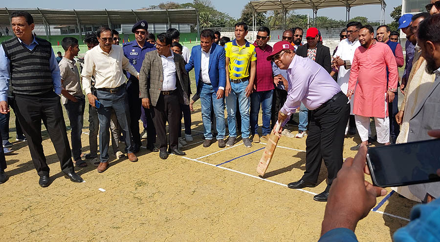 প্রতীকী ব্যাটিং করে প্রথম বিভাগ ক্রিকেট লীগের উদ্বোধন করেন প্রধান অতিথি মির্জা আজম এমপি। ছবি: বাংলারচিঠিডটকম