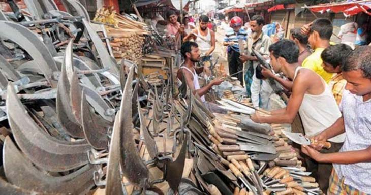 আর এই ঈদুল আযহাকে সামনে রেখে এখন ব্যস্ত সময় পার করছেন কামার শিল্পীরা। টুংটাং শব্দই বলছে ঈদ লেগেছে কামার পাড়ায়। দিন রাত চলছে চাপাতি, দা, বটি, ছুরি তৈরি ও শানের কাজ। নাওয়া খাওয়া ভুলে নির্ঘুম রাত কাটছে তাদের।