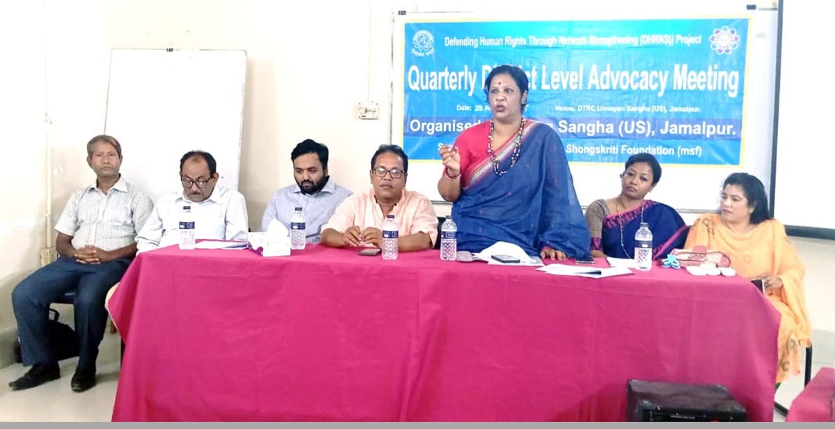 সকল প্রকার সহিংসতার বিরুদ্ধে গণজাগরণ তৈরি করা এবং মানবাধিকার লঙ্ঘনমুক্ত একটি শান্তিপূর্ণ সমাজ বিনির্মাণের লক্ষ্যে উন্নয়ন সংঘের ব্যবস্থাপনায় এবং মানবাধিকার সংস্কৃতি ফাউন্ডেশনের সহায়তায় জামালপুরে হিউম্যান রাইটস ডিফেন্ডার নেটওয়ার্কের উদ্যোগে জেলা পর্যায়ে অ্যাডভোকেসি সভা অনুষ্ঠিত হয়। ২৮ আগস্ট বুধবার উন্নয়ন সংঘের সংঘের প্রশিক্ষণ কেন্দ্র ডিটিআরসিতে অনুষ্ঠিত সভায় সভাপতিত্ব করেন জেলা হিউম্যান রাইটস ডিফেন্ডার নেটওয়ার্কের আহ্বায়ক জাহাঙ্গীর সেলিম।