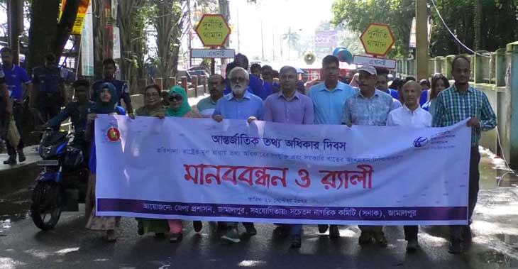 ‘রাষ্ট্রের মূল ধারায় তথ্য অধিকারের সংযুক্তি ও সরকারি খাতের অংশগ্রহণ নিশ্চিতকরণ’ এই প্রতিপাদ্য বিষয়কে সামনে রেখে জামালপুরে আন্তর্জাতিক তথ্য অধিকার দিবস উদযাপিত হয়েছে। ২৮ সেপ্টেম্বর শনিবার সকালে দিবসটি উপলক্ষে জেলা প্রশাসন, সচেতন নাগরিক কমিটি-সনাক জামালপুর ও ট্রান্সপারেন্সি ইন্টারন্যাশনাল বাংলাদেশ-টিআইবি শোভাযাত্রা ও আলোচনা সভার আয়োজন করে।