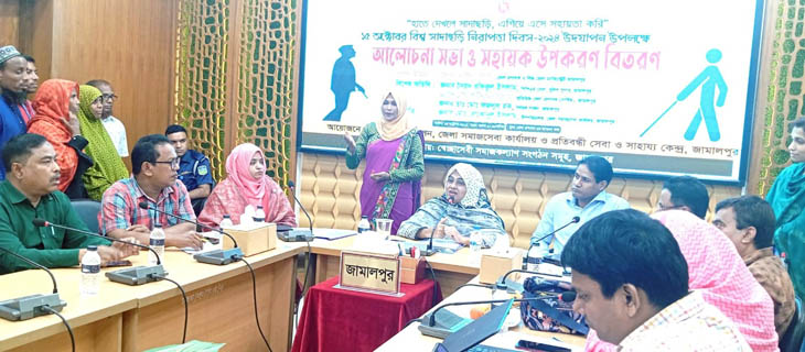 জামালপুরে বিশ্ব সাদাছড়ি দিবসের আলোচনা সভায় প্রধান অতিথির বক্তব্যে জেলা প্রশাসক হাছিনা বেগম বলেন, দৃষ্টি প্রতিবন্ধী প্রতিটি ছেলে-মেয়েদের নিজের পরিবারের সদস্য হিসেবে ভেবে তাদের আপন করে নেন। আল্লাহ তাদের উপর অশেষ রহমত দান করে থাকেন। তাদের প্রতি সদয় হলে এবং সমাজের মানুষগুলো এগিয়ে আসলে আত্মসন্তুষ্টি পাওয়ার পাশাপাশি সার্বিক উন্নয়নে তারা ভূমিকা রাখার সুযোগ পাবে। দৃষ্টি প্রতিবন্ধী জনগোষ্ঠীর সদস্যদের যথাযথ পরিচর্যা এবং তাদের অধিকার প্রতিষ্ঠা করতে পারলে সমাজের চেহারাটাই পাল্টে যাবে। দৃষ্টি প্রতিবন্ধী ছেলে, মেয়েদের শিক্ষা, সংস্কৃতি চর্চা, অনুশীলনের মাধ্যমে তাদের প্রতিভা বিকাশের ক্ষেত্রে সার্বিক সহায়তা দানের আশ্বাস দেন জেলা প্রশাসক হাছিনা বেগম।
