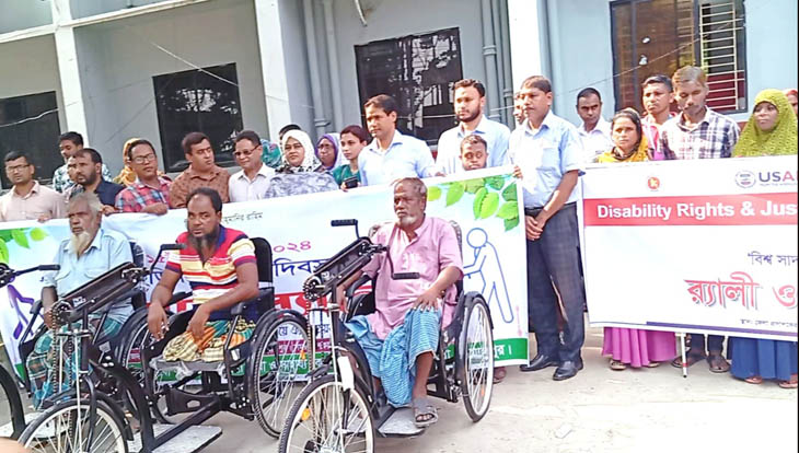 এর আগে শহরের বীর মুক্তিযোদ্ধা আজিজ মাস্টার চত্বর (ফৌজদারি মোড়) থেকে শোভাযাত্রা বের করা হয়। শোভাযাত্রা শেষে জেলা প্রশাসকের কার্যালয় প্রাঙ্গণে এসে শারীরিক প্রতিবন্ধী ব্যক্তিদের মাঝে ত্রি-চাকা বিশিষ্ট হুইল চেয়ার বিতরণ করা হয়। আলোচনা সভা শেষ দৃষ্টি প্রতিবন্ধী ব্যক্তিদের মাঝে ডিজিটাল সাদাছড়ি বিতরণ করা হয়।