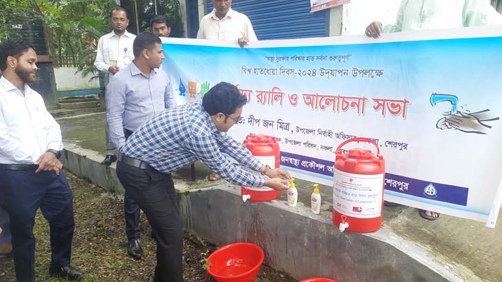 বিশ্ব হাত ধোয়া দিবস উপলক্ষে শেরপুরের নকলায় বর্ণাঢ্য শোভাযাত্রা, হাত ধোয়া কর্মসূচি ও আলোচনা সভা অনুষ্ঠিত হয়েছে।