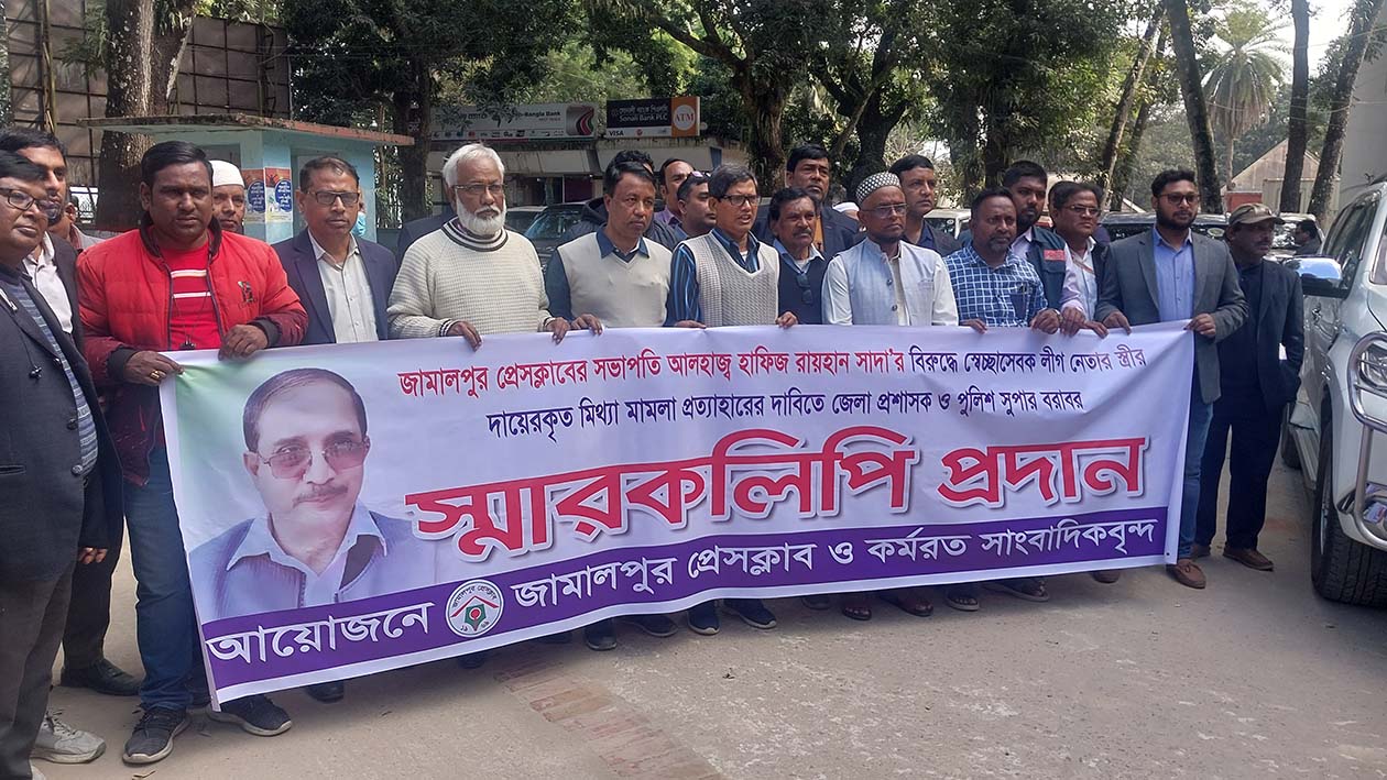 সমাবেশে জামালপুর প্রেসক্লাবের সাধারণ সম্পাদক লুৎফর রহমান বলেন, মেলান্দহ উপজেলার উলিয়া ইউনিয়ন স্বেচ্ছাসেবকলীগের সাধারণ সম্পাদক সাইদুল ইসলাম শিপন তার স্ত্রী সামসুন্নাহার সুমাইয়াকে দিয়ে জামালপুর প্রেসক্লাবের সভাপতি ও চ্যানেল আইয়ের সাংবাদিক হাফিজ রায়হান সাদার বিরুদ্ধে একটি মিথ্যা, বানোয়াট, ভিত্তিহীন ও উদ্দেশ্য প্রণোদিতভাবে দ্রুত বিচার আইনে একটি মামলা দায়ের করেছেন। এর প্রতিবাদে এবং এই মিথ্যা মামলাটি দ্রুত প্রত্যাহার করা দাবিতে আমরা কয়েকদিন ধরে আন্দোলন, সংগ্রাম করছি। আজকে একই দাবিতে জেলা প্রশাসক ও পুলিশ সুপারকে স্মারকলিপি দেওয়া হচ্ছে।