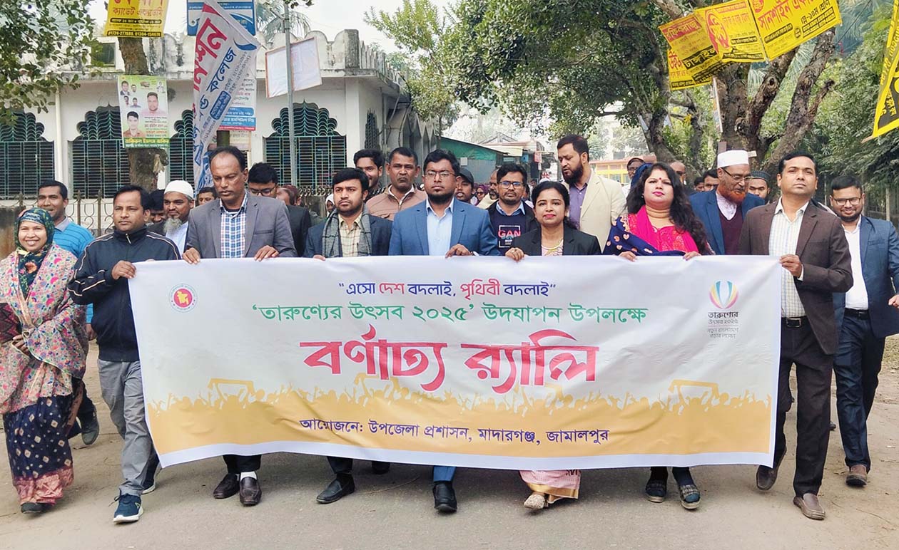 ‘এসো দেশ বদলাই, পৃথিবী বদলাই’ এ প্রতিপাদ্যের আলোকে জামালপুরের মাদারগঞ্জ উপজেলায় তারুণ্যের উৎসবের বর্ণাঢ্য শোভাযাত্রা ও ‘তারুণ্যের ভাবনায় আগামীর বাংলাদেশ’ শীর্ষক কর্মশালা অনুষ্ঠিত হয়েছে। ১৩ জানুয়ারি সোমবার সকালে উপজেলা প্রশাসন এ কর্মসূচির আয়োজন করে।