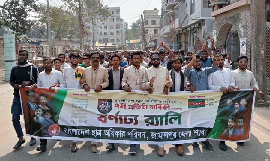 বাংলাদেশ ছাত্র অধিকার পরিষদের ৭ম প্রতিষ্ঠাবার্ষিকী উদযাপন উপলক্ষে আনন্দ শোভাযাত্রা ও পথসভা করেছে জামালপুর ছাত্র অধিকার পরিষদ। ১৭ ফেব্রুয়ারি সোমবার দুপুরে তারা এ কর্মসূচি পালন করেন।