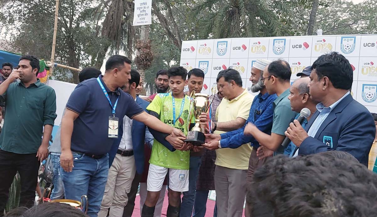 খেলা শেষে পুরস্কার বিতরণী অনুষ্ঠানের প্রধান অতিথি জামালপুরের পুলিশ সুপার সৈয়দ রফিকুল ইসলাম পিপিএম-সেবা, ময়মনসিংহ বিভাগীয় ফুটবল অ্যাসোসিয়েশনের সভাপতি আব্দুল্লাহ আল ফুয়াদ রেদুয়ান ও জামালপুর জেলা ফুটবল অ্যাসোসিয়েশনের সভাপতি আইনজীবী শাহ্ মো. ওয়ারেছ আলী মামুনসহ অন্যান্য অতিথিবৃন্দ চ্যাম্পিয়ন ও রানার্সআপ দলের মাঝে ট্রফি বিতরণ করেন। একই সাথে লিগসেরা ফুটবলার মাহফুজ মিয়ার হাতেও সম্মাননা ক্রেস্ট ও পাঁচ হাজার টাকার প্রাইজমানি তুলে দেন অতিথিবৃন্দ।