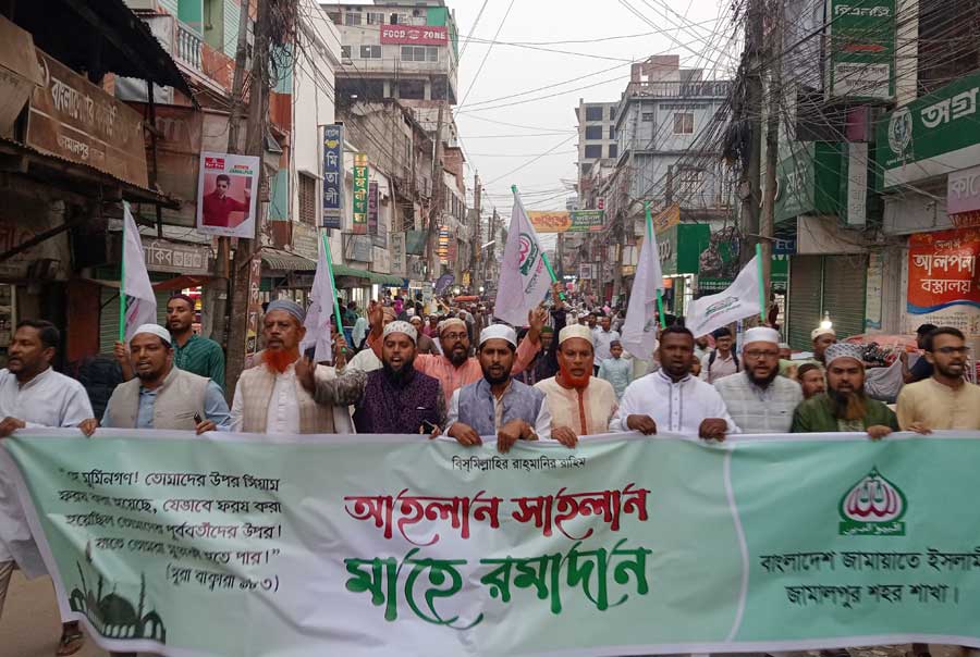 রমজান মাসের রোজার পবিত্রতা রক্ষায় ও দ্রব্যমূল্য সহনীয় পর্যায়ে রাখার দাবিতে জামায়াতে ইসলামী জামালপুর শহর শাখার উদ্যোগে মিছিল ও সমাবেশ অনুষ্ঠিত হয়েছে।