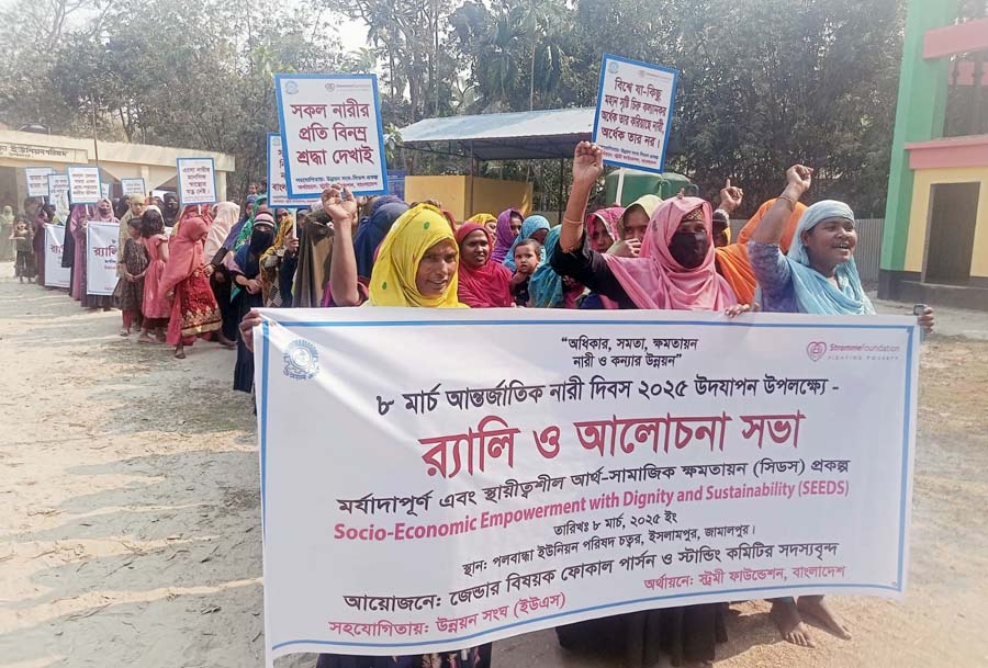 আন্তর্জাতিক নারী দিবস উপলক্ষে জেলা সদর, দেওয়ানগঞ্জ ও ইসলামপুর উপজেলার সিডস কর্মসূচির কর্মএলাকার ১২টি ইউনিয়নে বিভিন্ন আনুষ্ঠানিকতার মধ্যদিয়ে উদযাপিত হয়েছে। প্রতিটি ইউনিয়নে সকাল ১০টায় একযোগে অনুষ্ঠান শুরু হয়। নারী অধিকার ও নারীর প্রতি সকল প্রকার বৈষম্য দূরীকরণ বিষয়ক স্লোগান সম্বলিত প্লে-কার্ড, ফেস্টুন সহকারে সংক্ষিপ্ত শোভাযাত্রা বের করা হয়।