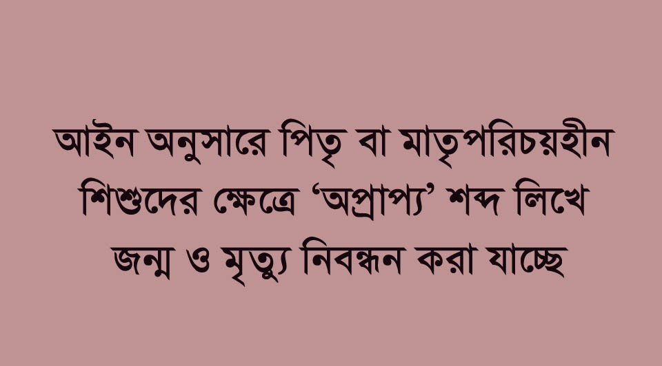 জন্ম ও মৃত্যু নিবন্ধন আইন, ২০০৪ এর সংশোধনী আইনে ‘অপ্রাপ্য’ অপশন সম্পর্কে ব্যাখ্যায় বলা হয়েছে- “আইনের দফা (ক) ও (খ) তে যা কিছুই থাকুক না কেন, কোন ব্যক্তি এতিম, প্রতিবন্ধী, তৃতীয় লিঙ্গের ব্যক্তি, পিতৃ বা মাতৃপরিচয়হীন, পরিচয়হীন, বেদে, ভবঘুরে, পথবাসী বা ঠিকানাহীন বা যৌনকর্মী হওয়ায় নিবন্ধক তথ্যের ঘাটতির কারণে উক্ত ব্যক্তির জন্ম বা মৃত্যু নিবন্ধন প্রত্যাখ্যান করিতে পারিবেন না এবং এরূপ ক্ষেত্রে যে সকল তথ্য অসম্পূর্ণ থাকিবে সে সকল স্থানে ‘অপ্রাপ্য’ শব্দ লিখে জন্ম ও মৃত্যু নিবন্ধন করতে হবে।”