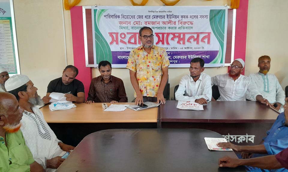 জামালপুরের বকশীগঞ্জ উপজেলায় পারিবারিক বিরোধের জের ধরে ইউনিয়ন কৃষকদলের সদস্য রমজান আলীর বিরুদ্ধে ষড়যন্ত্রমূলক অপপ্রচারের প্রতিবাদে সংবাদ সম্মেলন অনুষ্ঠিত হয়েছে। ৪ অক্টোবর, শনিবার দুপুরে মেরুরচর ইউনিয়ন কৃষকদলের আয়োজনে উপজেলা প্রেসক্লাব কার্যালয়ে সংবাদ সম্মেলন অনুষ্ঠিত হয়।