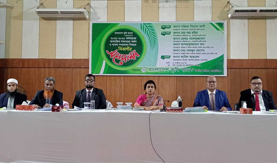 ময়মনসিংহ বিভাগীয় কার্যালয় বিকেবি’র মহাব্যবস্থাপক জামিল আহমেদের সভাপতিত্বে আলোচনা সভায় প্রধান অতিথির বক্তব্য রাখেন বাংলাদেশ কৃষি ব্যাংকের ব্যবস্থাপনা পরিচালক সঞ্চিয়া বিনতে আলী। তিনি বলেন, আপনারা জানেন কৃষি উন্নয়ন, খাদ্য নিরাপত্তা এবং কৃষকের আর্থিক সহায়তায় বাংলাদেশ কৃষি ব্যাংক গুরুত্বপূর্ণ ভূমিকা পালন করে আসছে। কৃষি খাতে এবং ক্ষুদ্র ও মাঝারি শিল্প উদ্যােক্তাদের মধ্যে ঋণ বিতরণসহ আমানত সংগ্রহ ও ঋণ আদায় করতে হবে। চলতি বছরে ব্যবসায়িক লক্ষ্যমাত্রা অর্জনে ও লাভজনক পর্যায়ে উন্নতিকরণে সবার সম্মিলিত প্রচেষ্টার প্রয়োজন।