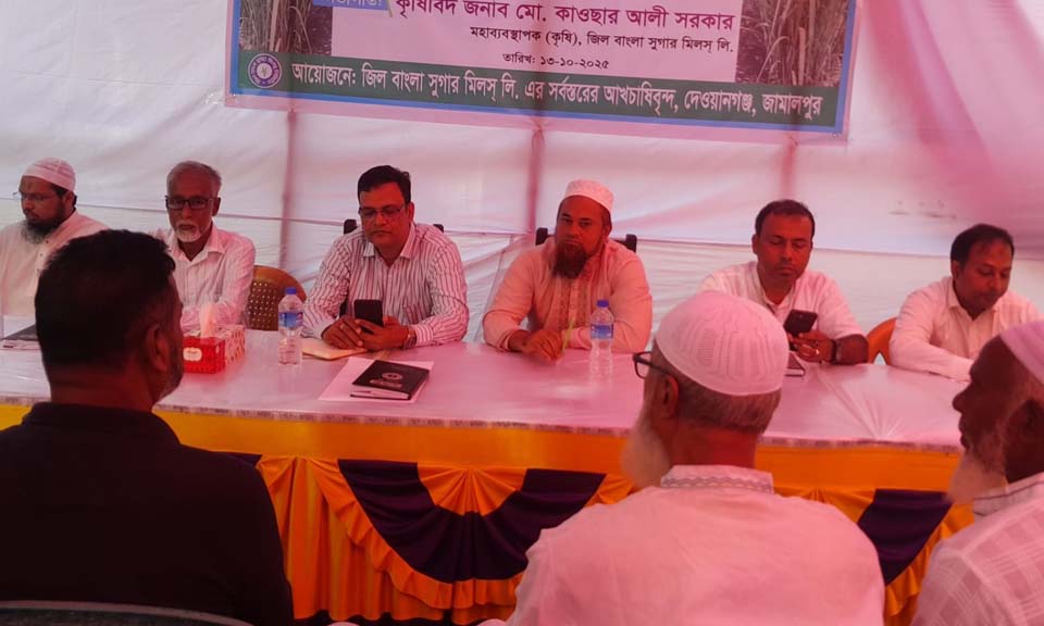 জামালপুরের দেওয়ানগঞ্জ উপজেলায় আখচাষিদের সাথে ২০২৫-২৬ রোপণ মৌসুমে আগাম আখচাষ বৃদ্ধি এবং ২০২৫-২৬ মাড়াই মৌসুমে চিনিকলে পরিষ্কার-পরিচ্ছন্ন আখ সরবরাহ শীর্ষক মতবিনিময় সভা অনুষ্ঠিত হয়েছে।