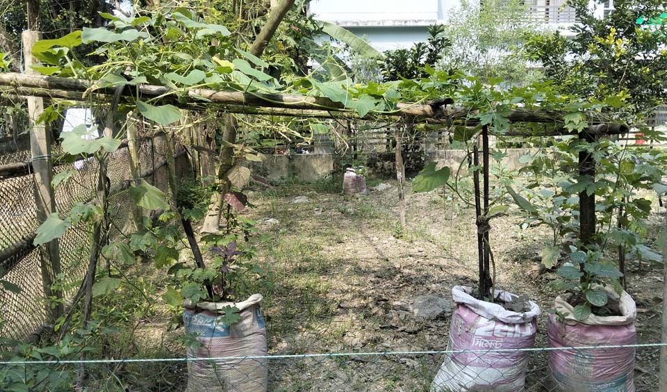 জামালপুরের মাদারগঞ্জ উপজেলা কৃষি কর্মকর্তার কার্যালয় প্রাঙ্গণের পতিত জমি এখন সবুজে ভরে উঠেছে। সারিবদ্ধ বস্তায় চাষ করা হয়েছে পুঁইশাক, লাউ, সিম, আদাসহ নানা জাতের সবজি।