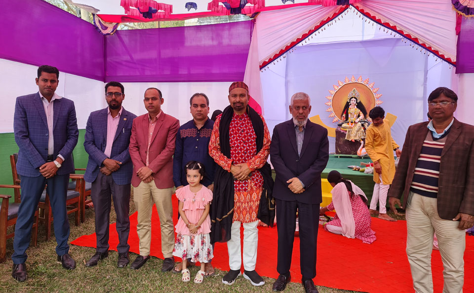 শেরপুর : শেরপুর সরকারি কলেজের অধ্যক্ষ অধ্যাপক মো. আব্দুর রউফ ও পূজা উদযাপন কমিটির আহ্বায়ক অধ্যাপক শিব শংকর কারুয়াসহ অন্যান্য শিক্ষকবৃন্দ সরস্বতী পূজামণ্ডপ পরিদর্শন করেন। ছবি : বাংলারচিঠিডটকম
