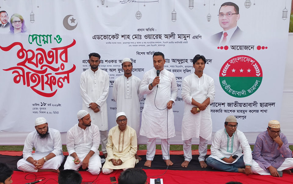 পবিত্র রমজান মাসের রোজা উপলক্ষে জামালপুর সরকারি আশেক মাহমুদ কলেজ শাখা ছাত্রদলের দোয়া ও ইফতার মাহফিল অনুষ্ঠিত হয়েছে। ১৮ মার্চ, বুধবার কলেজ শাখা ছাত্রদল কোরআন তিলাওয়াত প্রতিযোগিতা শেষে দোয়া ও ইফতার মাহফিলের আয়োজন করে।