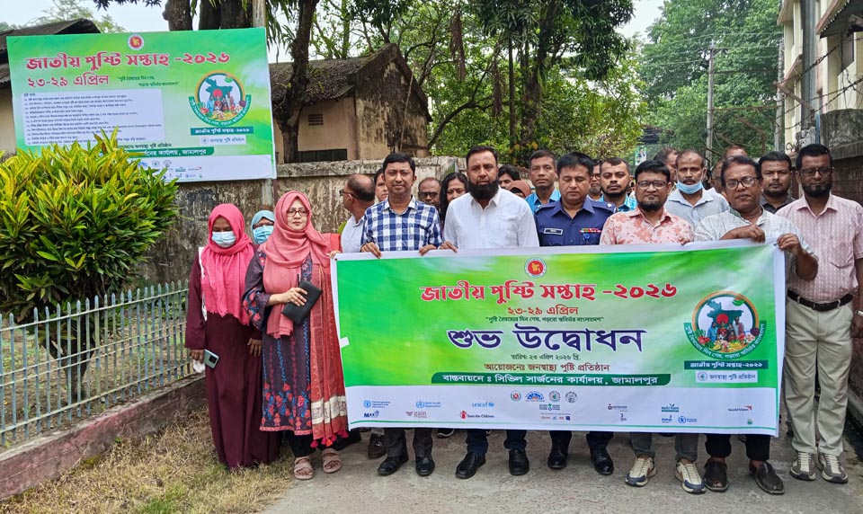 ‘পুষ্টি বৈষম্যের দিন শেষ, গড়বো স্বনির্ভর বাংলাদেশ’ এ স্লোগানকে সামনে রেখে ২৩ এপ্রিল, বৃহস্পতিবার জামালপুরে জাতীয় পুষ্টি সপ্তাহ শুরু হয়েছে। এ উপলক্ষে জামালপুর সিভিল সার্জনের কার্যালয় এবং সদর উপজেলা স্বাস্থ্য ও পরিবার পরিকল্পনা কার্যালয়ের উদ্যোগে পৃথকভাবে কর্মসূচি পালন করা হয়।
