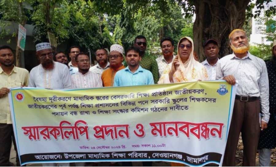 দেওয়ানগঞ্জে শিক্ষা প্রতিষ্ঠান জাতীয়করণের দাবিতে মানববন্ধন