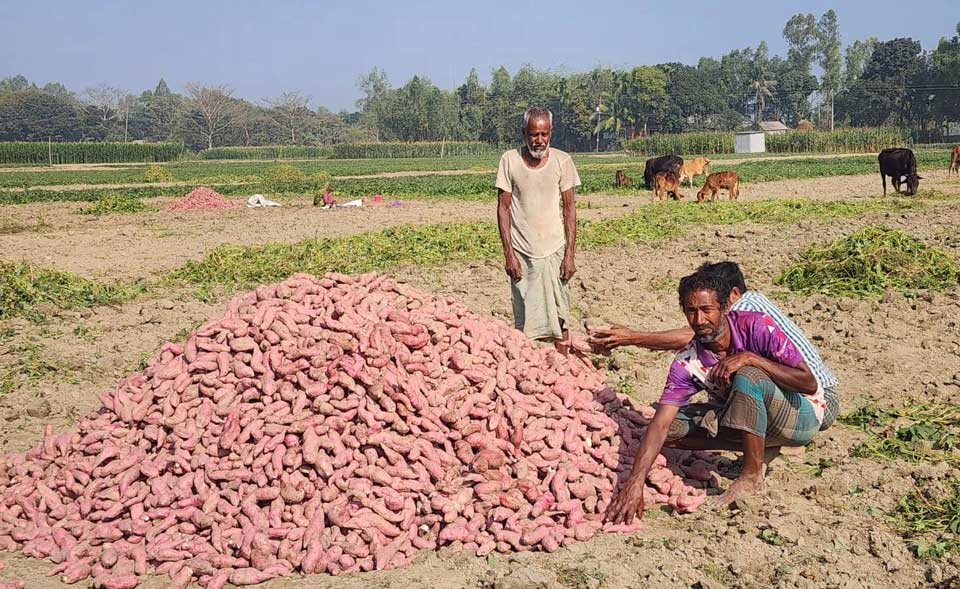 মিষ্টি আলুর ভাল ফলনে মাদারগঞ্জের কৃষকের মুখে মিষ্টি হাসি