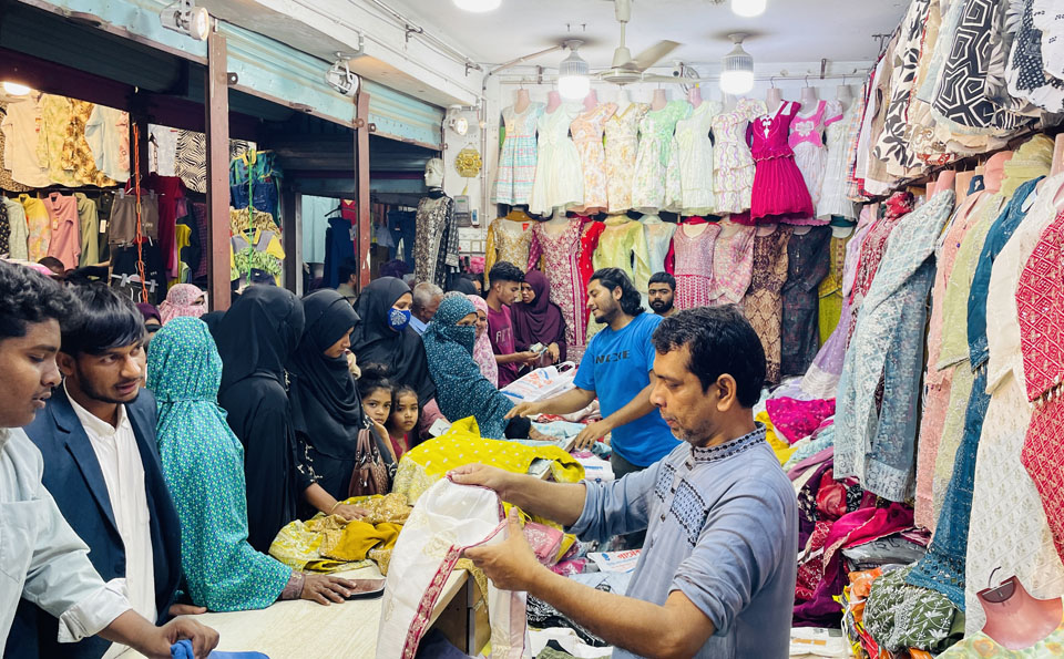ঈদকে ঘিরে মাদারগঞ্জে জমজমাট পোশাক বেচাকেনা