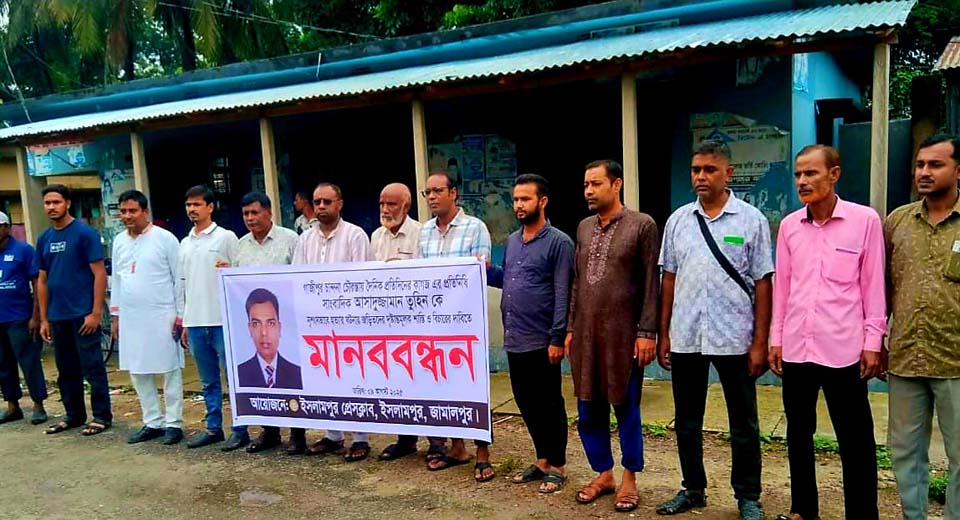 সাংবাদিক তুহিন হত্যা : জড়িতদের শাস্তির দাবিতে ইসলামপুরে মানববন্ধন