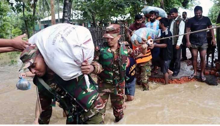 বন্যার্তদের উদ্ধারে ৬ জেলায় কাজ করছে সশস্ত্র বাহিনী
