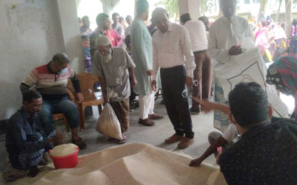 মাহমুদপুরে শান্তিপূর্ণ পরিবেশে হতদরিদ্রদের মাঝে চাল বিতরণ