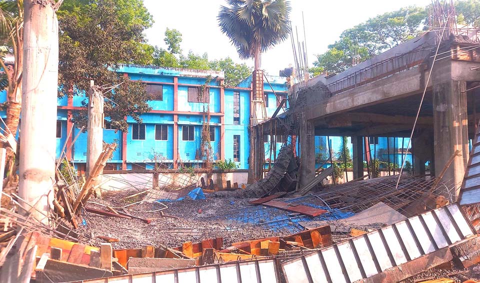 ধসে পড়েছে ইসলামপুর থানা ভবনের নির্মাণাধীন ছাদ