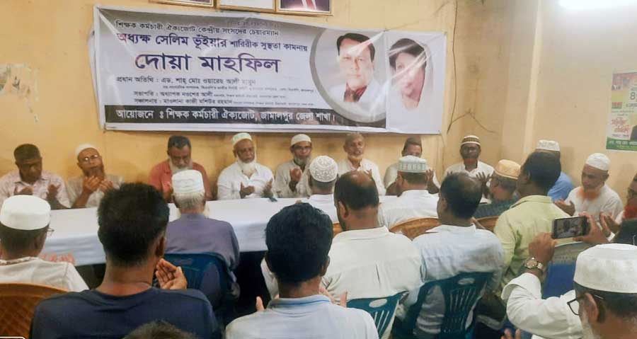 শিক্ষক কর্মচারী ঐক্যজোট কেন্দ্রীয় সংসদের চেয়ারম্যান অধ্যক্ষ সেলিম ভূঁইয়ার শারীরিক সুস্থতা কামনা করে জামালপুরে দোয়া করেছে শিক্ষক কর্মচারী ঐক্যজোট জামালপুর
