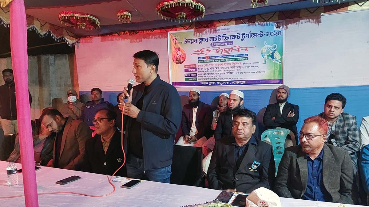 জামালপুর শহরের বামুনপাড়ায় উদয়ন ক্লাব নাইট ক্রিকেট টুর্নামেন্ট সিজন-সিক্সের উদ্বোধনী অনুষ্ঠানে পুলিশ সুপার মো. সৈয়দ রফিকুল ইসলাম পিপিএম বলেছেন, উদয়ন