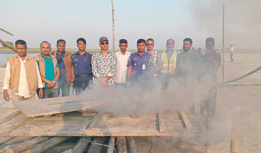 নোয়ারপাড়ায় যমুনার চরে জুয়া ও যাত্রার প্যান্ডেল পুড়িয়ে দিল পুলিশ