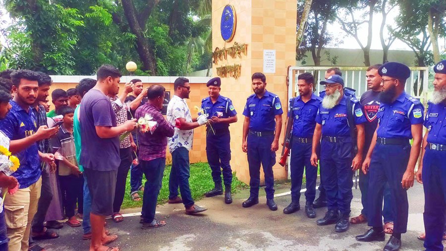 কর্মস্থলে ফেরা জামালপুরের পুলিশদের শুভেচ্ছা জানালো শিক্ষার্থীরা