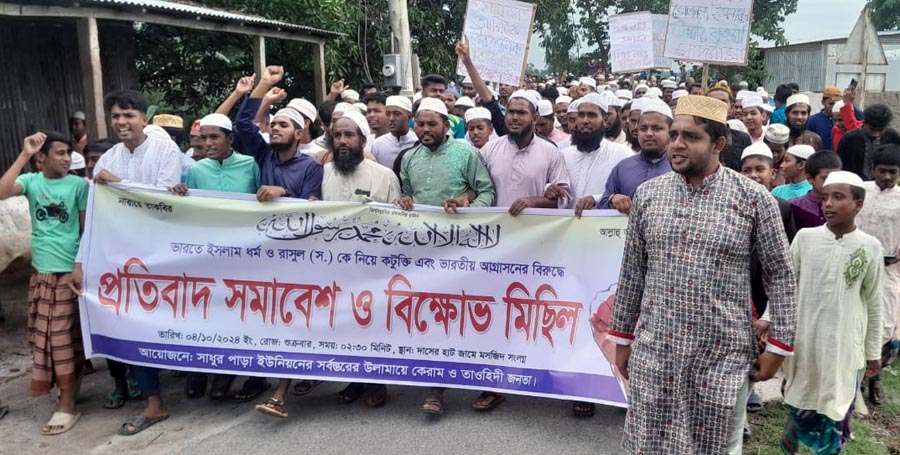ভারতের কট্টরপন্থী হিন্দু পণ্ডিত ও বিজেপির সংসদ সদস্য কর্তৃক বিশ্বনবী হযরত মুহাম্মদ (সা.)-কে অবমাননা ও কটূক্তির প্রতিবাদে জামালপুরের বকশীগঞ্জ উপজেলায়