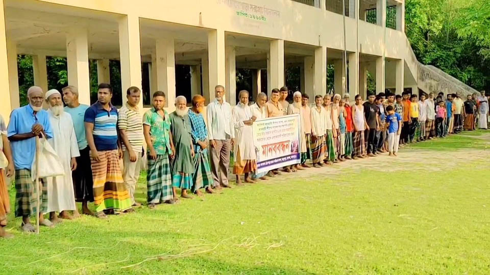 আমার দেশ সম্পাদকের বিরুদ্ধে মামলার প্রতিবাদে মাদারগঞ্জে মানববন্ধন