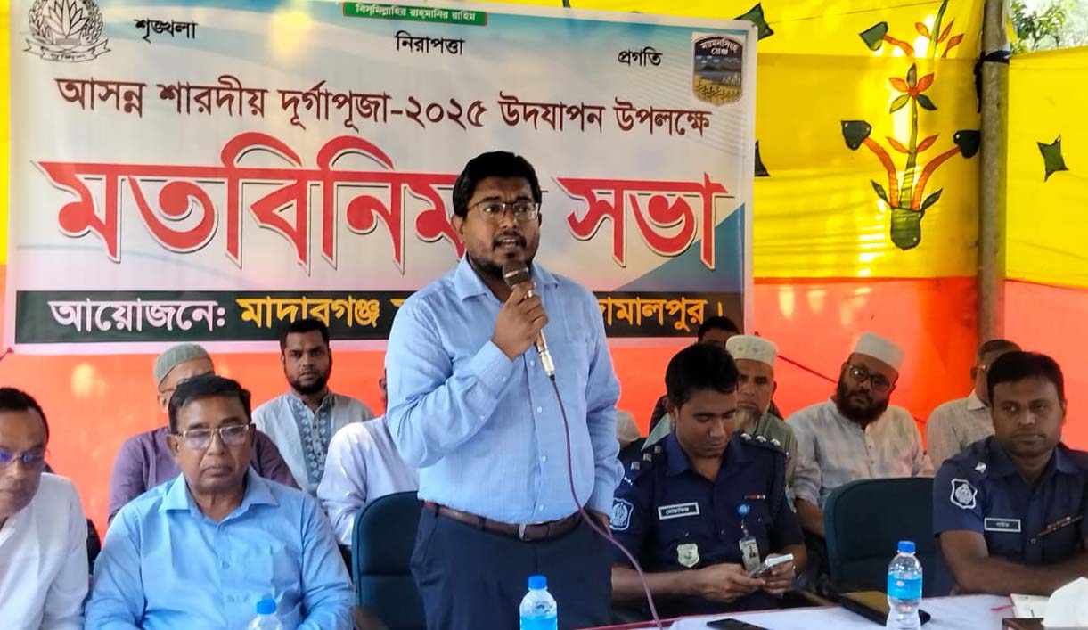 মাদারগঞ্জে শারদীয় দূর্গাপূজা উদযাপন উপলক্ষে মতবিনিময় সভা