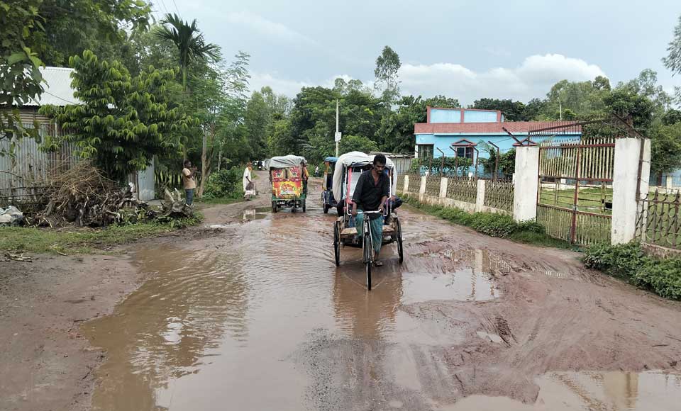 মাদারগঞ্জের বালিজুড়ী বাজার-জামথল সড়কে খানাখন্দ, দেড় লাখ মানুষের দুর্ভোগ