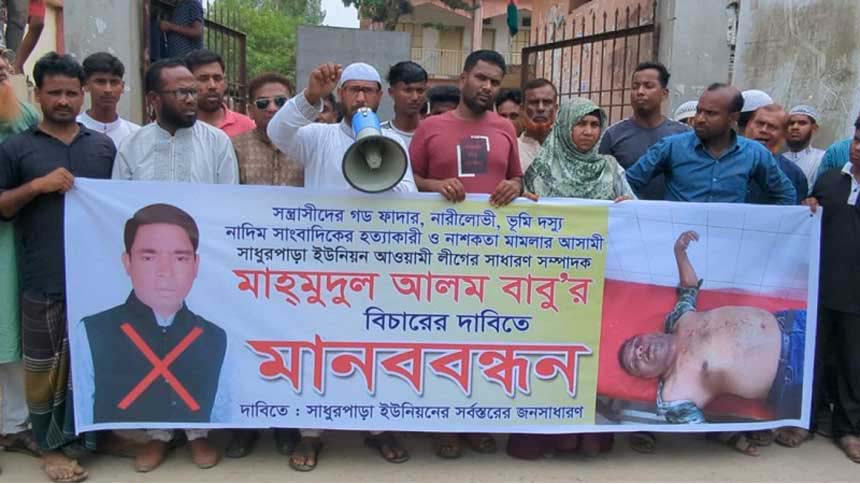 মাহমুুদুল আলম বাবুকে গ্রেপ্তারের দাবিতে সাধুরপাড়ায় মানববন্ধন